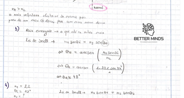 Serie 2- Refração da luz. Lei de Snell. Reflexão interna total
